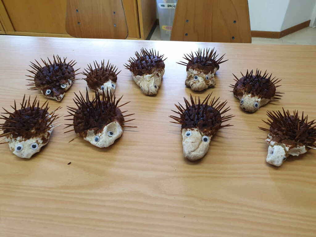 Les petits ont réalisé des hérissons en pâte à sel, et ils ont eu la chance d’avoir la visite d’une spécialiste du refuge de l’association « tombapic », qui récupère et soigne des hérissons blessés. Elle est venue accompagnée de petits hérissons, les élèves étaient ravis !