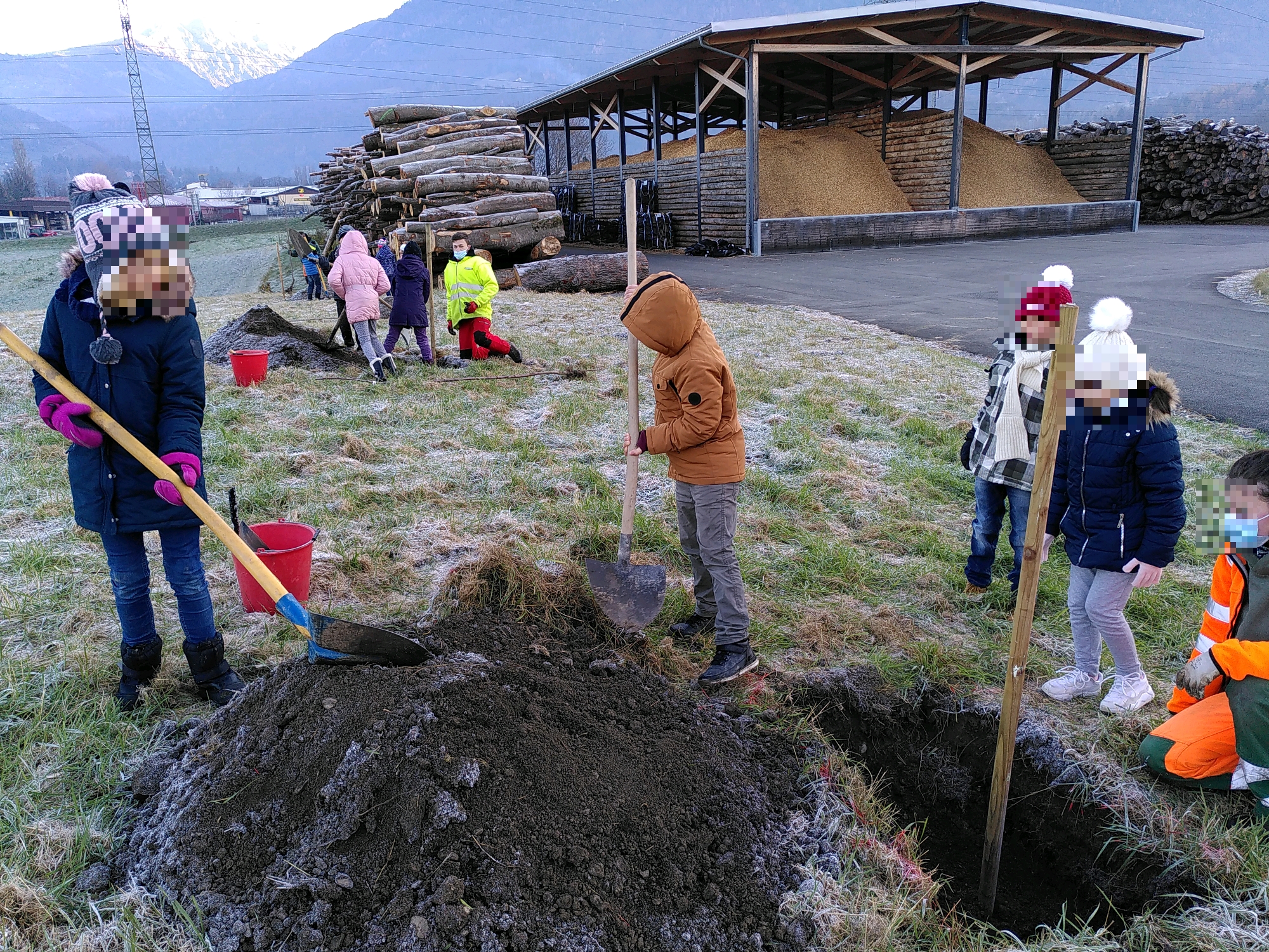 Cet automne, la classe 5P/E est allée prêter main forte aux services communaux pour planter 20 arbres fruitiers. Ils ont bravé le gel pour se rendre jusqu’aux serres communales qui bordent l’autoroute. L’accueil fut très chaleureux par les différents agents qui ont pris en charge les groupes de 4 élèves.